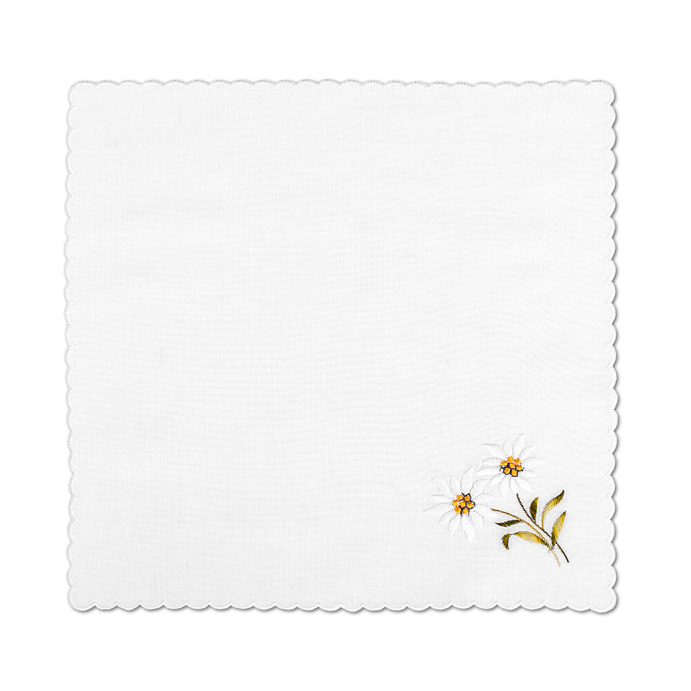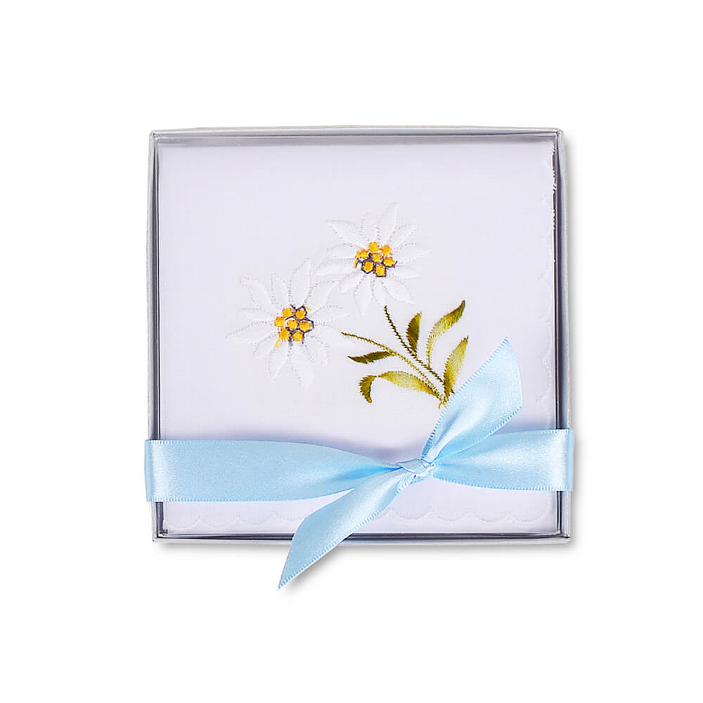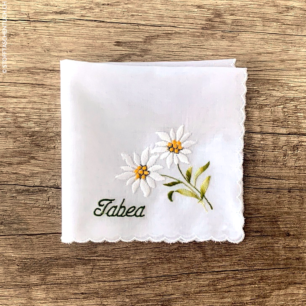 Dieses filigrane und zarte Damen-Stofftaschentuch misst 25 x 25 cm. Das edle Einstecktuch besteht aus feiner Baumwolle in bester Qualität, gewoben und bestickt in der Schweiz. Unsere nachhaltig produzierten Taschentücher sind extrem langlebig und passen damit auch hervorragend in jeden Zero Waste-Haushalt. Gerne personalisieren wir Ihr Stoffnastuch auch für Sie, sei dies mit Ihren Initialen oder dem Namen der Person, die Sie beschenken möchten.