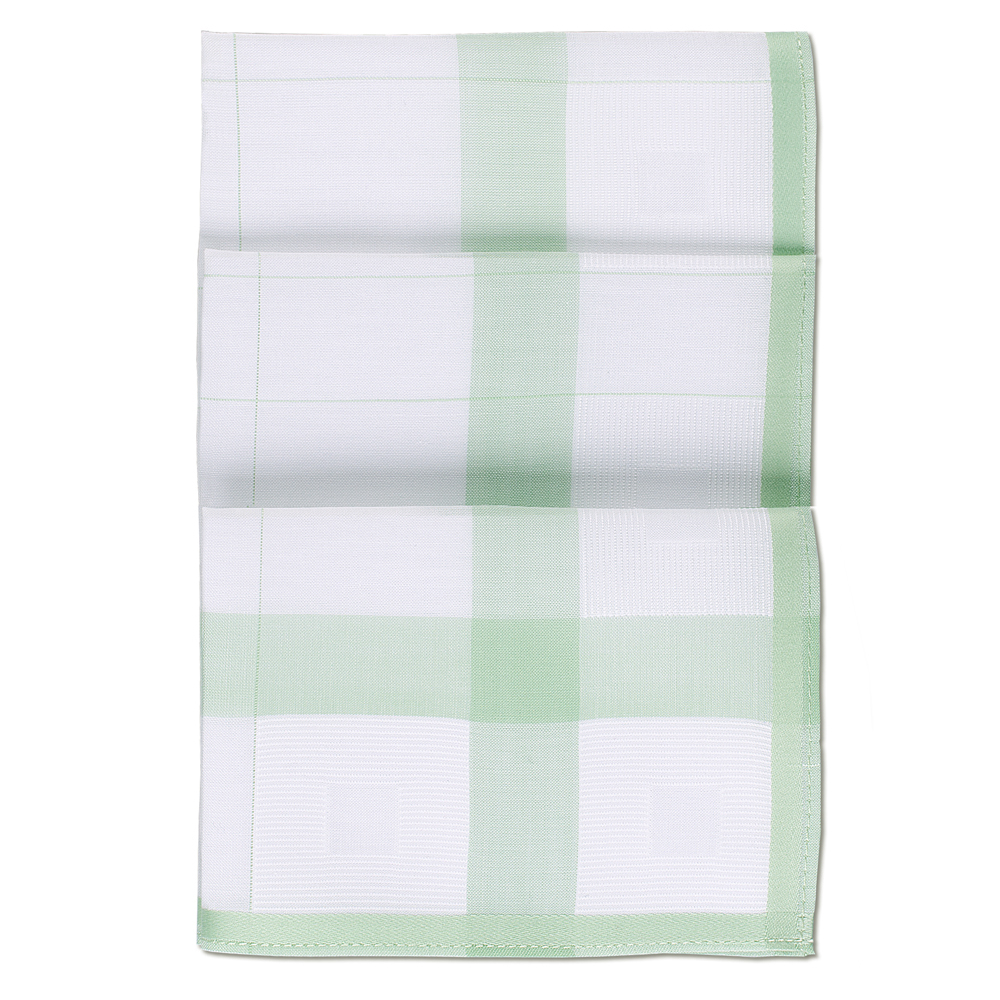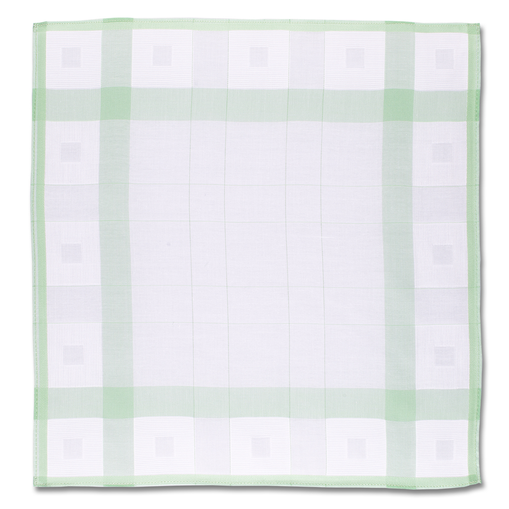 Sanft wie eine Sommerbrise präsentiert sich die Farbe Grün auf diesen Stofftaschentüchern für Damen.
