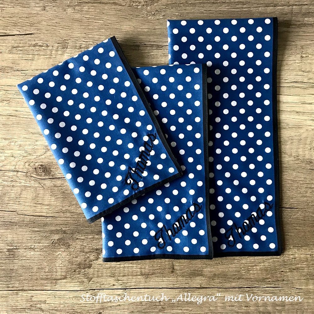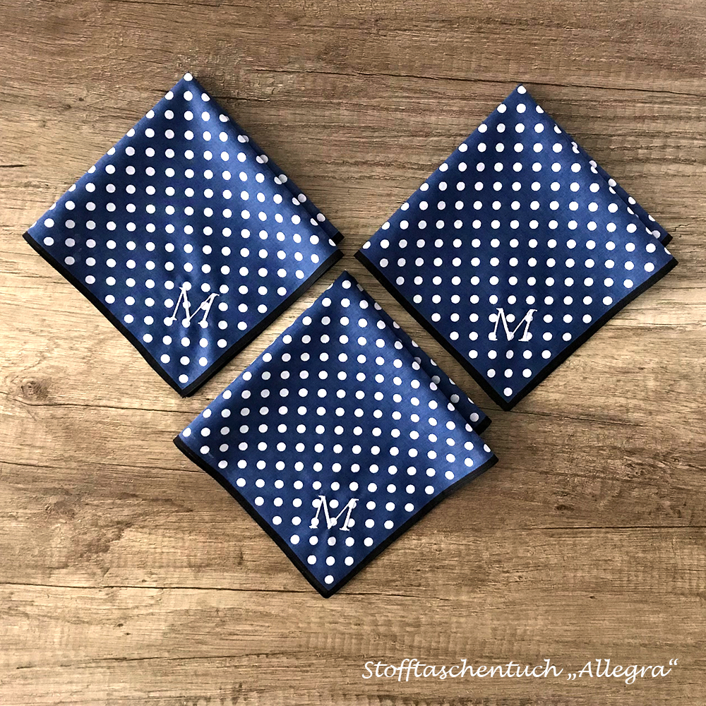 Durch seine kleine Grösse lässt sich das Taschentuch “Allegra” mit den Dots sehr gut als Einstecktuch verwenden oder passt perfekt in die Hosentasche eines modischen Anzuges.