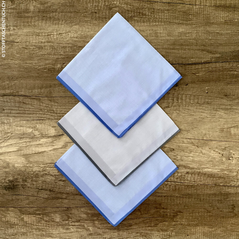 | Verpackungseinheit | Pro Set erhalten Sie zwei blaue und ein graues Stofftaschentuch |