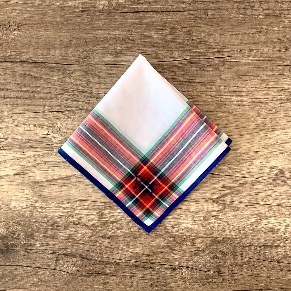 Für alle Naturburschen, Outdoor Profis, „Survival artists“ und Wandervögel sind diese Nastücher ein absolutes „Must have“. Die handlich kleinen und maschinengesäumten „Schnudderlumpen“ passen in jeden Rucksack und in jede Hosentasche. Die verschieden-farbigen Streifen in grün, rot, orange gelb und schwarz sind in den Längsstreifen transparent gewoben. Dunkelblaue Initialen passen perfekt zum dunkelblauen Rand.